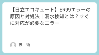 「エコキュートにER99エラーが表示された…」「給湯もお風呂も使えない…」そんな症状が出ている場合は、すぐに確認が必要です。日立エコキュートのER99エラーは、漏水検知による安全停止エラーです。機器を保護するために、すべての機能が停止する重...