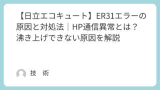 「エコキュートにER31エラーが表示された…」「お湯は使えるけど、沸き上げができていない気がする…」そんな症状でお困りではありませんか?日立エコキュートのER31エラーは、ヒートポンプ(HP)との通信異常を示すエラーです。沸き上げに直接関係...
