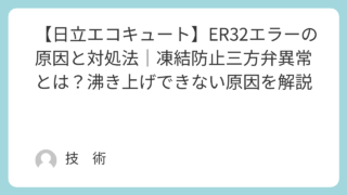 「エコキュートにER32エラーが表示された…」「お湯は使えるけど、沸き上げができない…」そんな症状でお困りではありませんか?日立エコキュートのER32エラーは、凍結防止三方弁の異常を示すエラーです。沸き上げに関係する重要な部品のため、放置す...