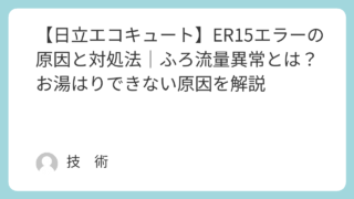 「エコキュートにER15エラーが表示された…」「給湯は使えるのに、お風呂のお湯はりができない…」そんな症状でお困りではありませんか?日立エコキュートのER15エラーは、ふろの流量異常(OFF故障)を示すエラーです。お風呂機能に直接影響するた...