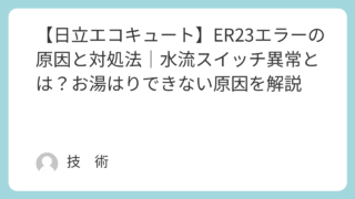 「エコキュートにER23エラーが表示された…」「給湯は使えるのに、お風呂のお湯はりができない…」そんな症状でお困りではありませんか?日立エコキュートのER23エラーは、水流スイッチ異常(ふろ配管異常)を示すエラーです。お風呂機能に直接影響す...